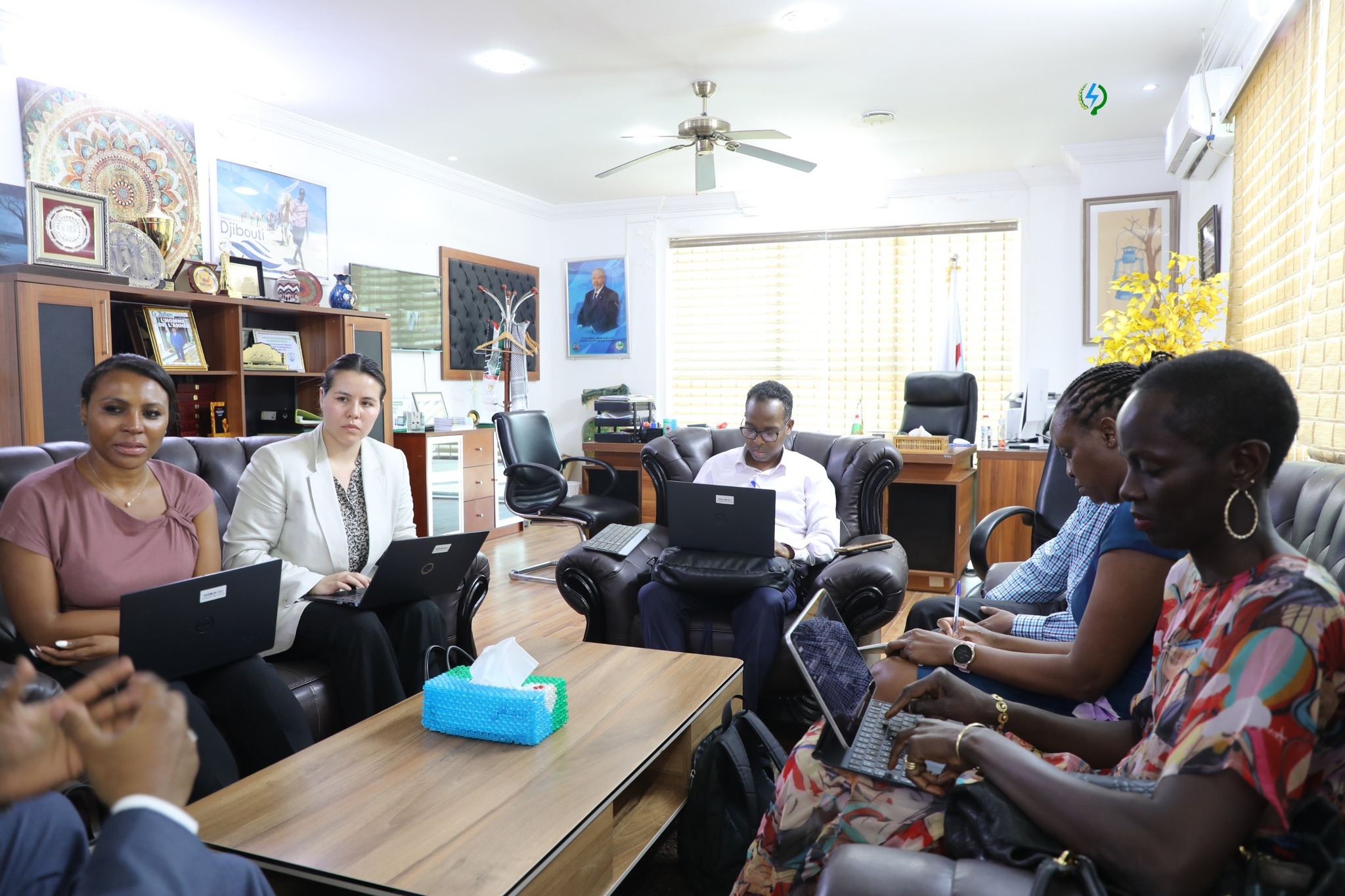 Le Ministre de l'Energie, chargé des Ressources Naturelles, Son Excellence Monsieur Yonis Ali Guedi a reçu, aujourd'hui, en son Cabinet, une forte délégation de l'Agence Multilatérale de Garantie des Investissements (MIGA) du Groupe de la Banque Mondiale, en mission de travail dans notre pays.
