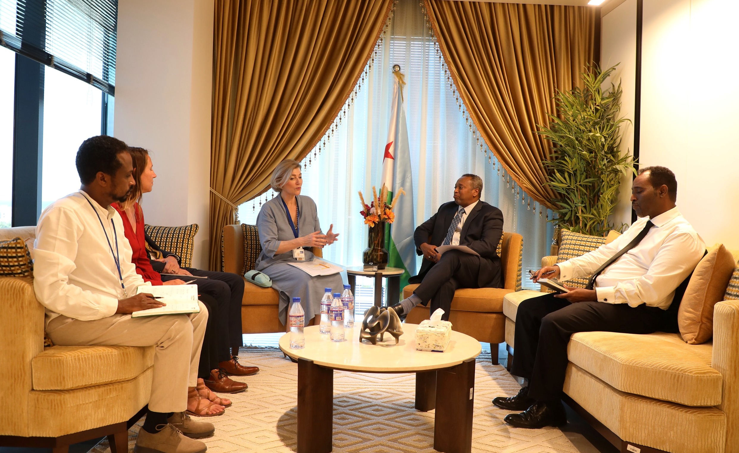 Le Ministre de l’Energie, chargé des Ressources Naturelles, Son Excellence Monsieur Yonis Ali Guedi a reçu, Lundi 16 février 2026, dans l'après-midi, en son cabinet à Energia Park, l'Ambassadeure de l'Union Européenne à Djibouti et auprès de l'IGAD, Son Excellence Madame Denisa-Elena IONETE, accompagnée du Chef de coopération de la délégation européenne, M. Gerald Halter et des chargés de programmes, Mme Justine Poder et M. Abdirasak Omar Moumin.