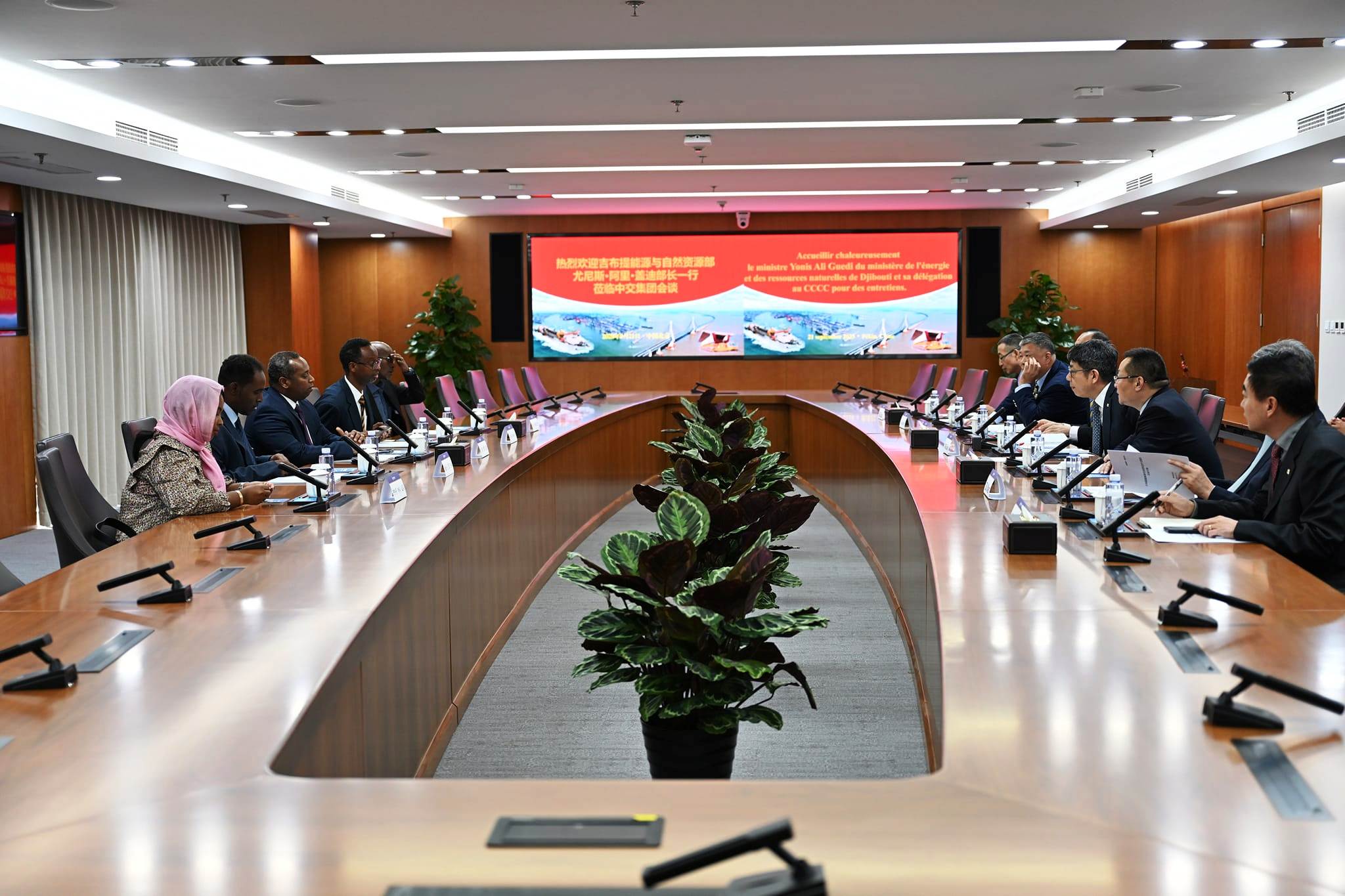 Accompagné d'une forte délégation comprenant entre autres de son Conseiller Technique, M. Mahdi Waberi Hassan, du Directeur des Ressources Naturelles, M. Aden Hyd Ismael et du Directeur Général du Port de Ghoubet, M. Abdo Mohamed Ali, le Ministre a d'emblée effectué une visite du siège du groupe chinois où il a pris connaissance de ses différentes activités et des divers projets concrétisés en Afrique et dans le monde.
