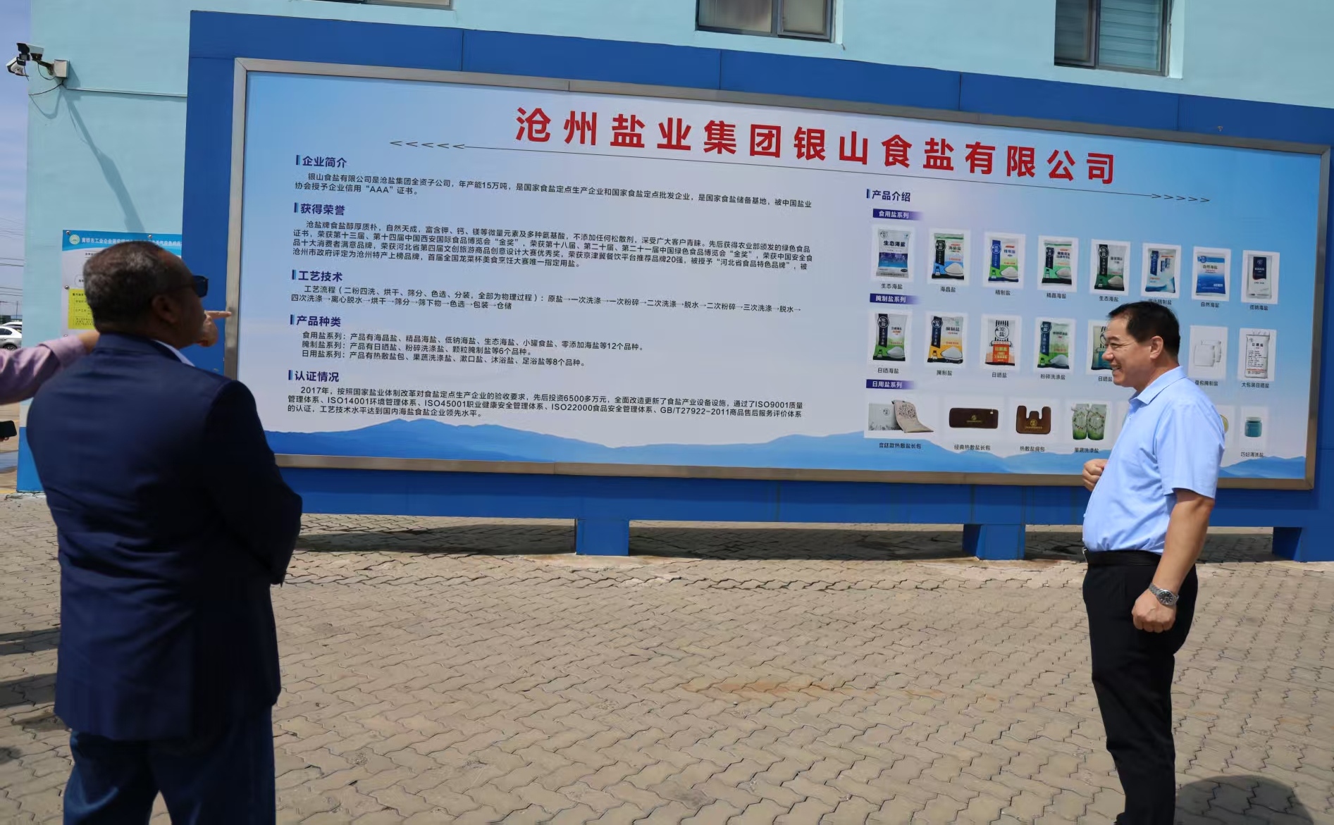 Après la signature, le Mercredi 27 Août, de l' accord tripartite MERN/Salt Investment S.A/Beijing China-Mining Jinfa Technology Co.,Ltd, pour la mise en œuvre d’un Nouveau Plan de développement de l'industrie du sel du Lac Assal d'un montant global de plus 38 millions de dollars US, le Ministre de l'Energie, chargé des Ressources Naturelles, Son Excellence Monsieur Yonis Ali Guedi a effectué, hier Jeudi, la visite d'une usine de production et de transformation de sel alimentaire appartenant à la société chinoise Cangzhou Salt Group (Yin Shan Shi Yan), installée dans la ville de Huanghua, dans la province de Hebei, située au Sud-Est de Pékin.