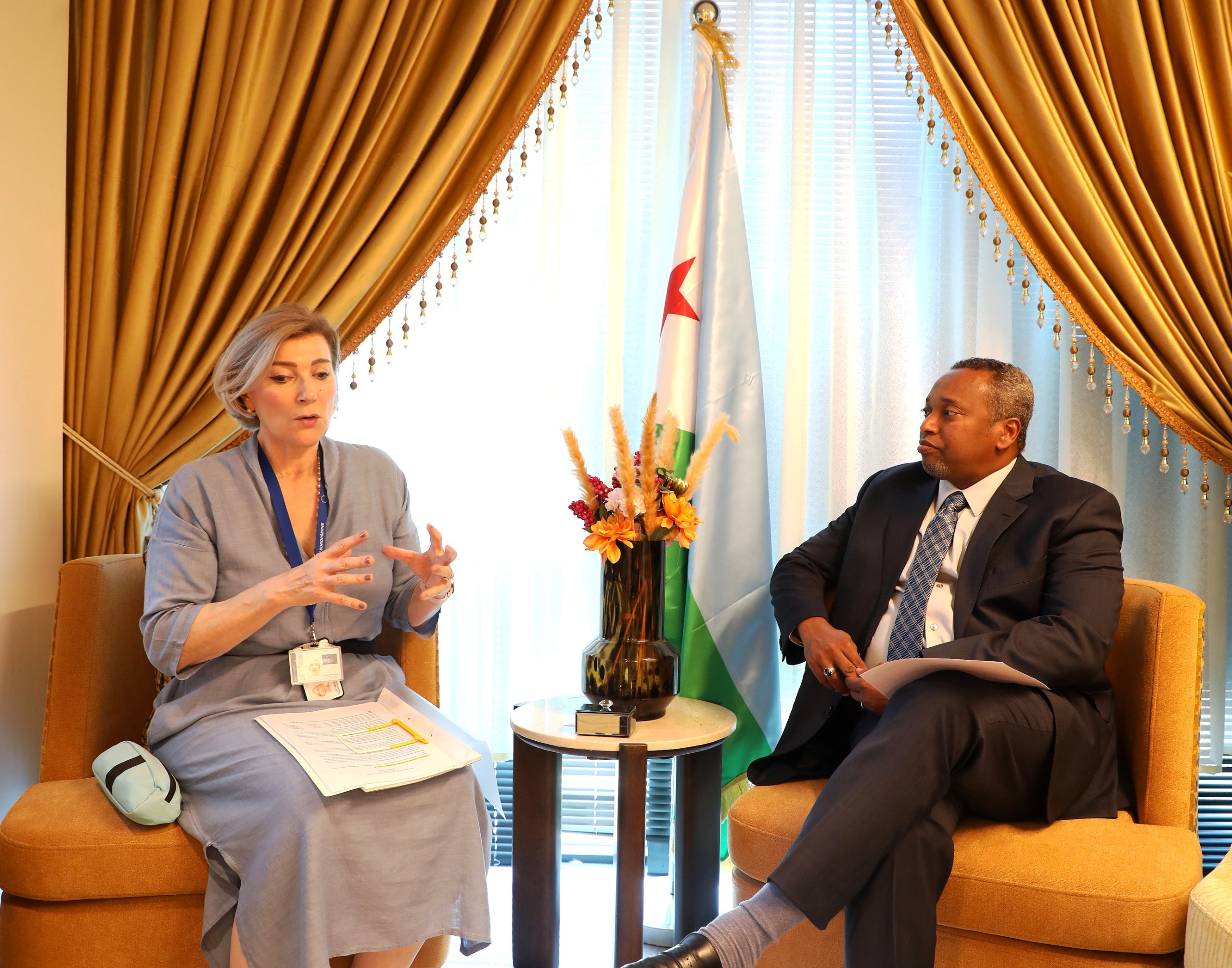 Cette rencontre entre le Ministre et la diplomate de l'UE s’inscrit dans le cadre du renforcement des relations de coopération entre la République de Djibouti et l'Union Européenne, notamment dans les domaines du développement des énergies renouvelables (géothermique, éolienne et solaire entre autres) et de l'hydrogène vert qui en découle.